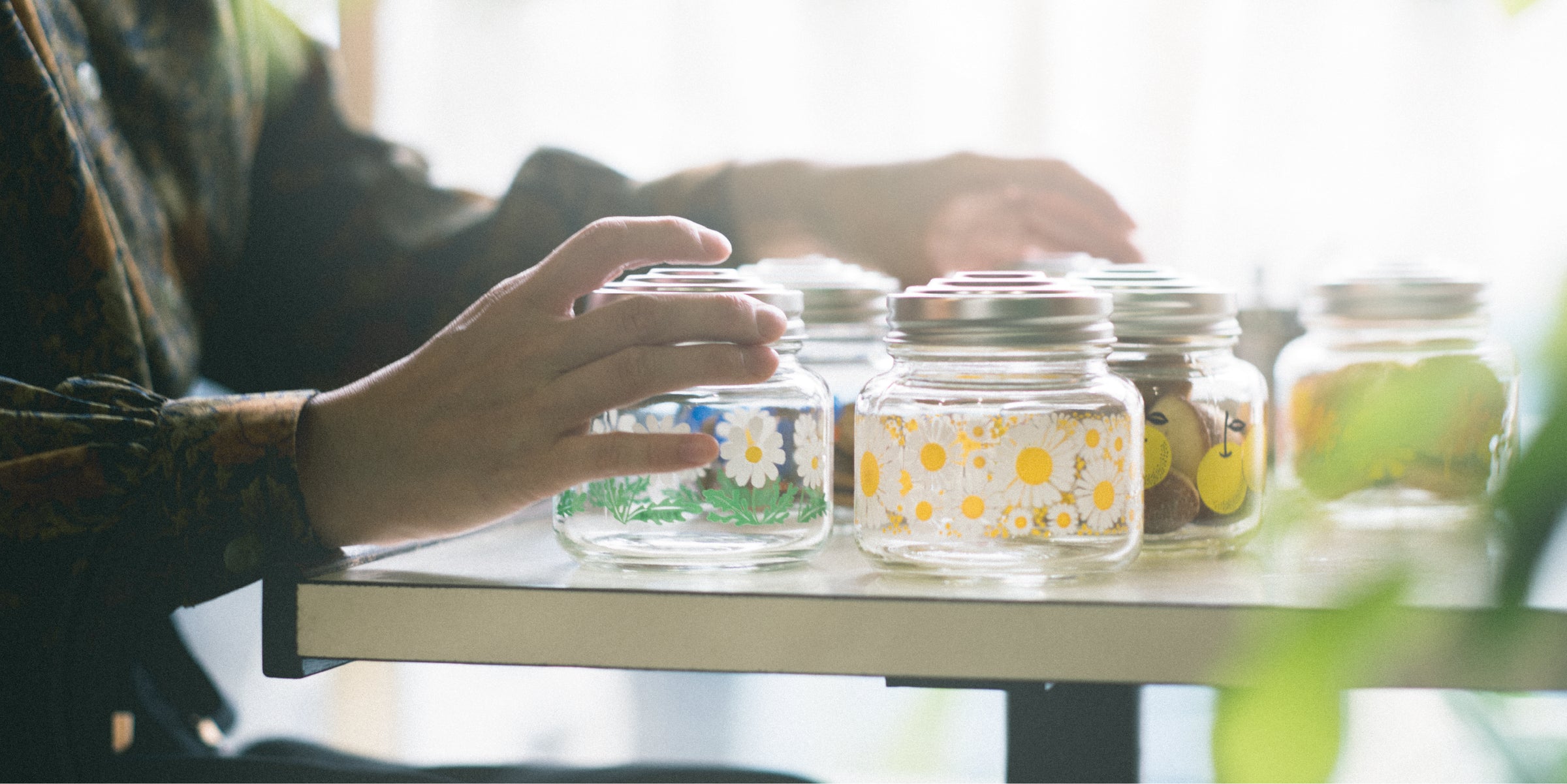 ぷっくりとした膨らみのあるフォルムが特徴の「アデリアアレンジ」は、昭和48(1973)年にアデリアが発売したガラス製のコップ(グラス)です。普段使いにちょうど良くかわいらしいコップで、昭和当時は様々なプリントを施して販売されていました。くびれがあるので持ちやすく、どんなドリンクとも相性の良いスタンダートな形状も魅力です。現代でもファンの多いこのコップを、アデリアレトロシリーズとして復刻しました。 コップをひっくり返して見ると底にアデリアのマークが刻印されているのも、昭和当時のデザインが基になっています。「アデリアアレンジ」は、昭和当時は「アレンジ」という名前で販売されていました。