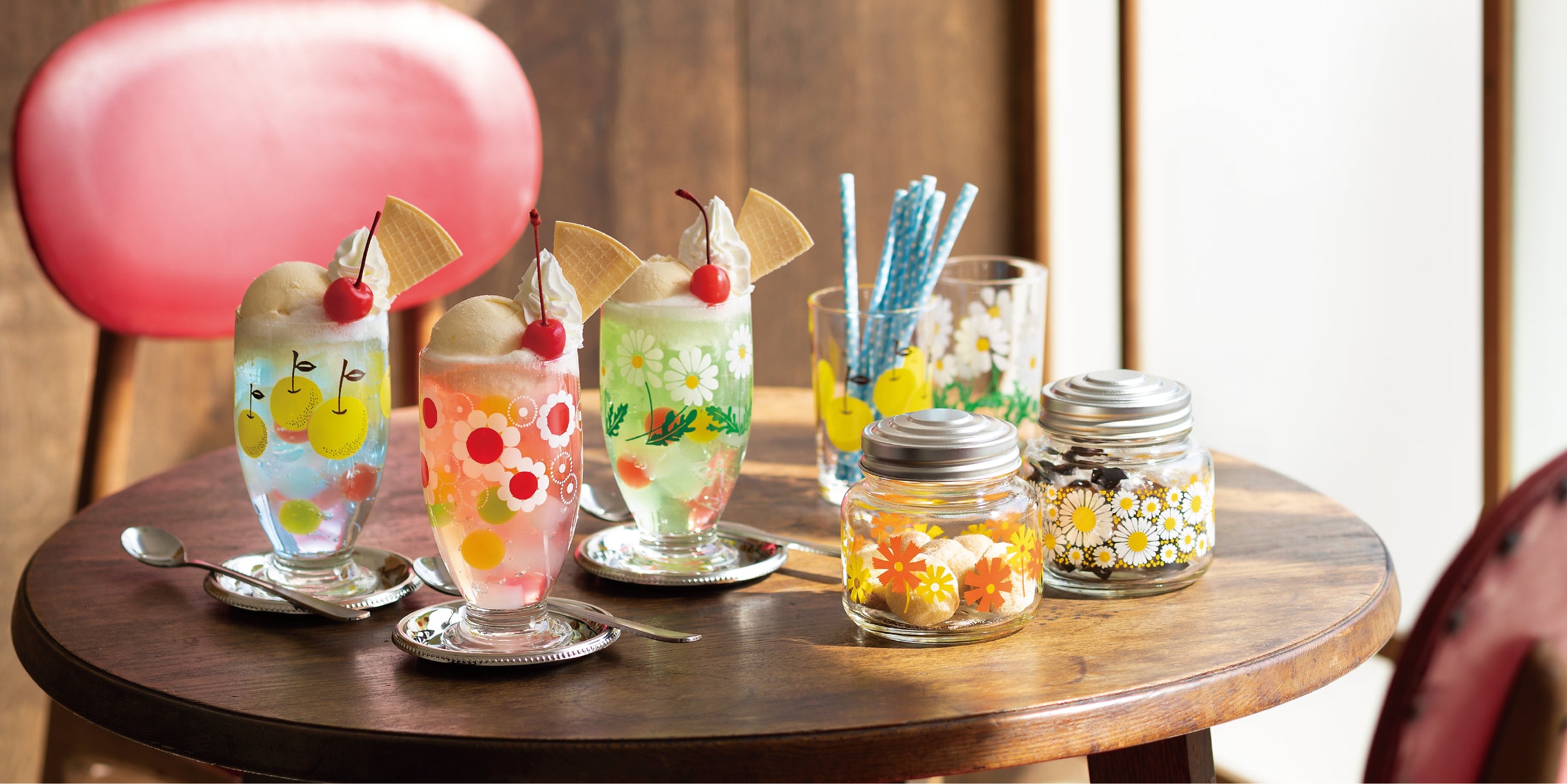 当時は様々な形状のガラス食器に展開され、かわいらしいフルーツのデザインが注目を集めました。