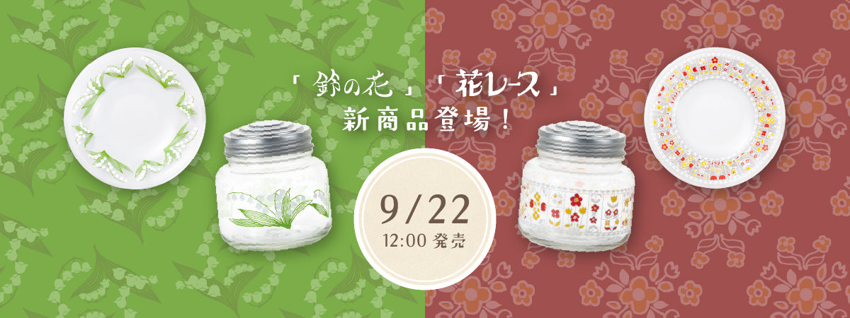 今年4月にアレンジの形状で登場した新柄「花レース」と「鈴の花」